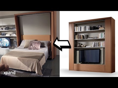 Amore Revolving TV Murphy Bed demo Expand Furniture - Amore Furniture - A Revolving TV Media center that has a hidden Murphy Bed behind it. The whole system rotates 180 degrees including the TV and Shelves. Product from: ...